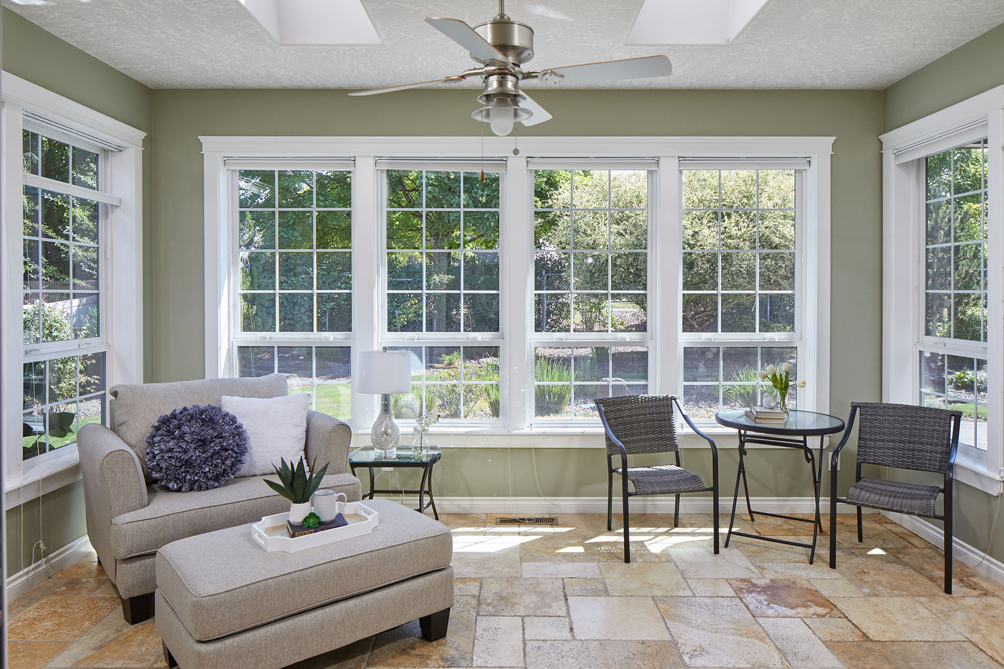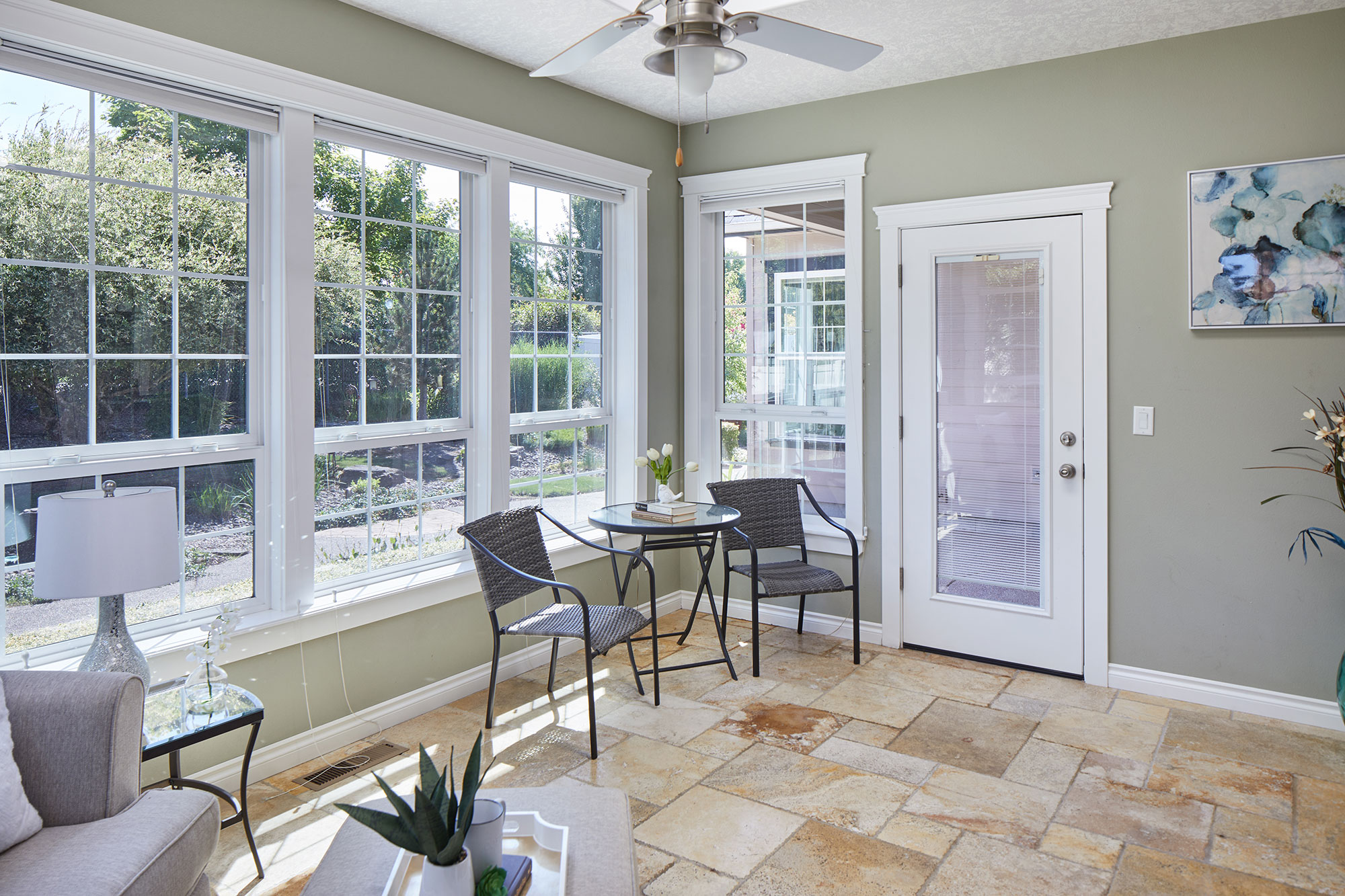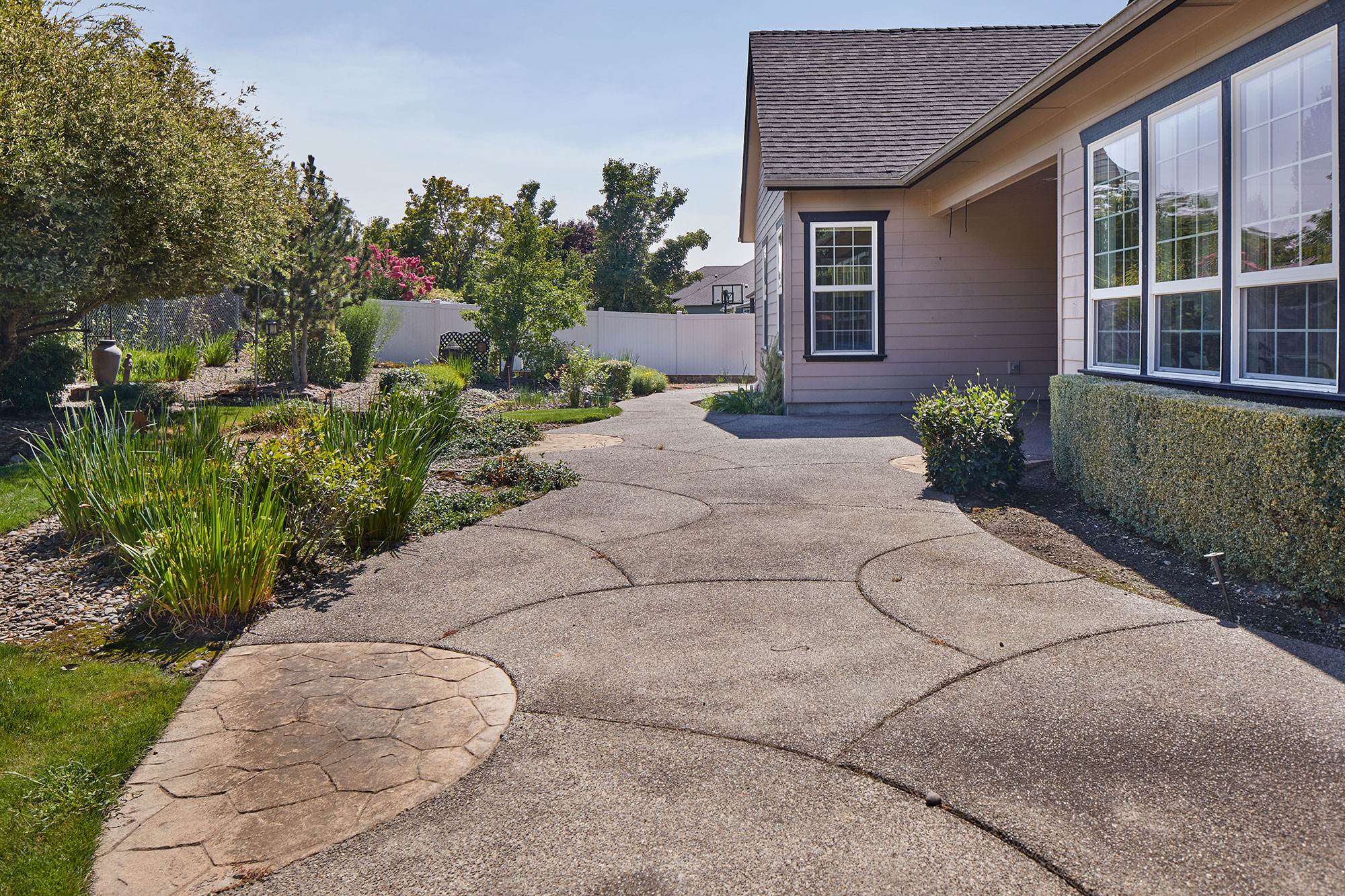 Welcome to this beautiful architect designed and custom-built home. A wonderful traditional upscale feeling flows from the entry all the way to the back yard. Too many custom features to mention. 2,567 sq ft all on one level! Beautiful laminate and tile floors in living and traffic areas and brand-new carpeting in two of the three bedrooms. A gorgeous library wall in the great room serves as the focal point of the living area and surrounds a gas fireplace. The bright and cheerful family room feels more like a sunroom with walls of windows and skylights. The cook’s dream kitchen has granite, tile and two sinks plus a generous walk-in pantry. The back yard has large expanses of aggregate and stamped concrete, lush and expansive landscaping.