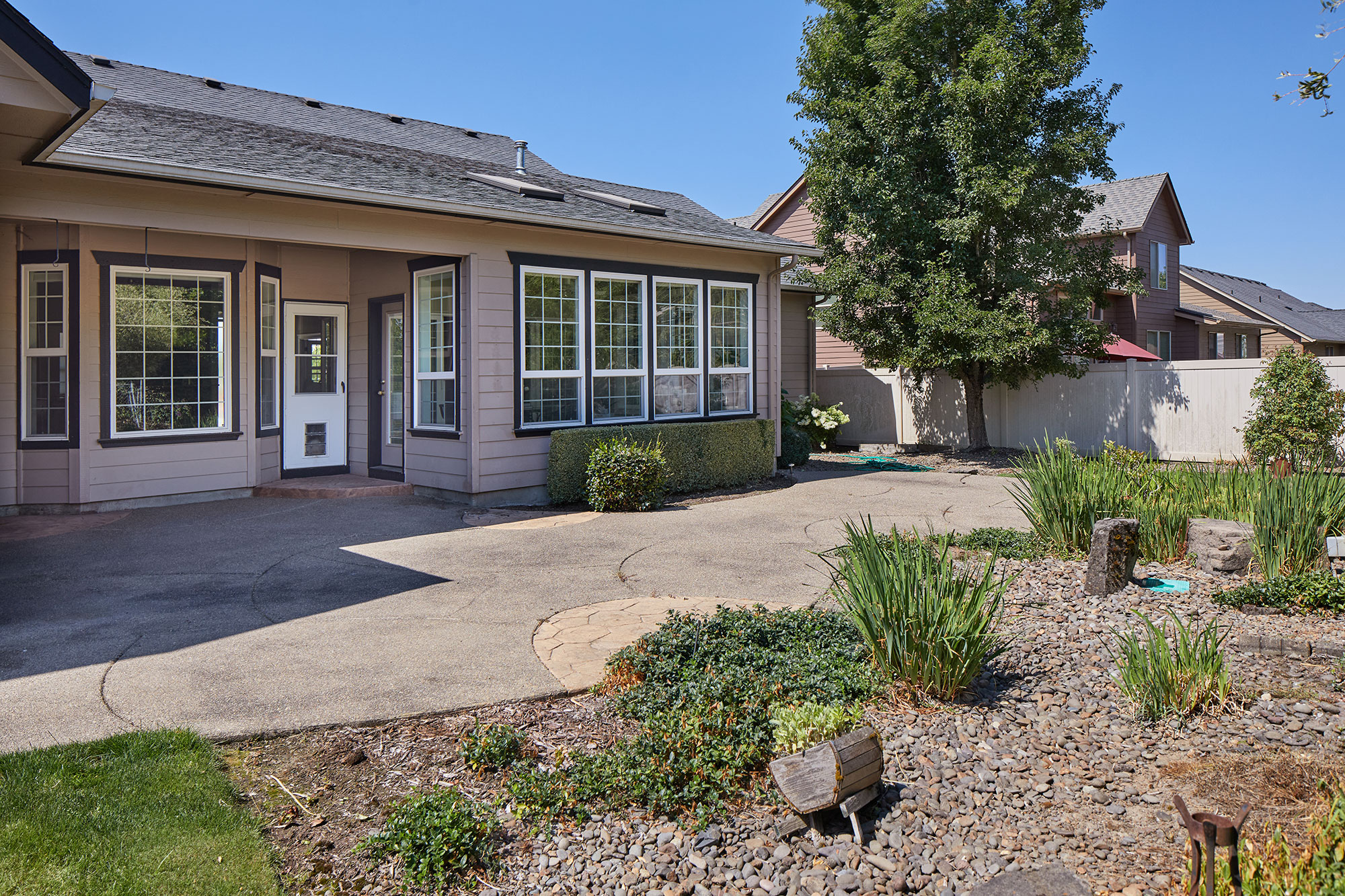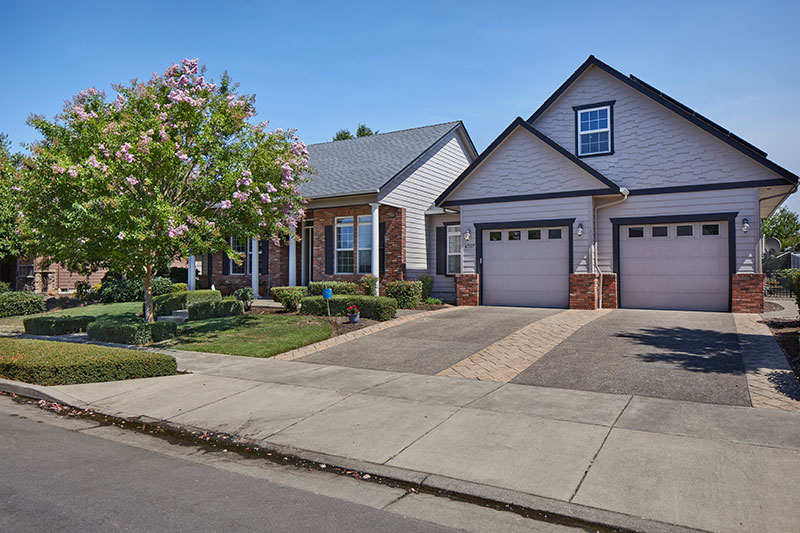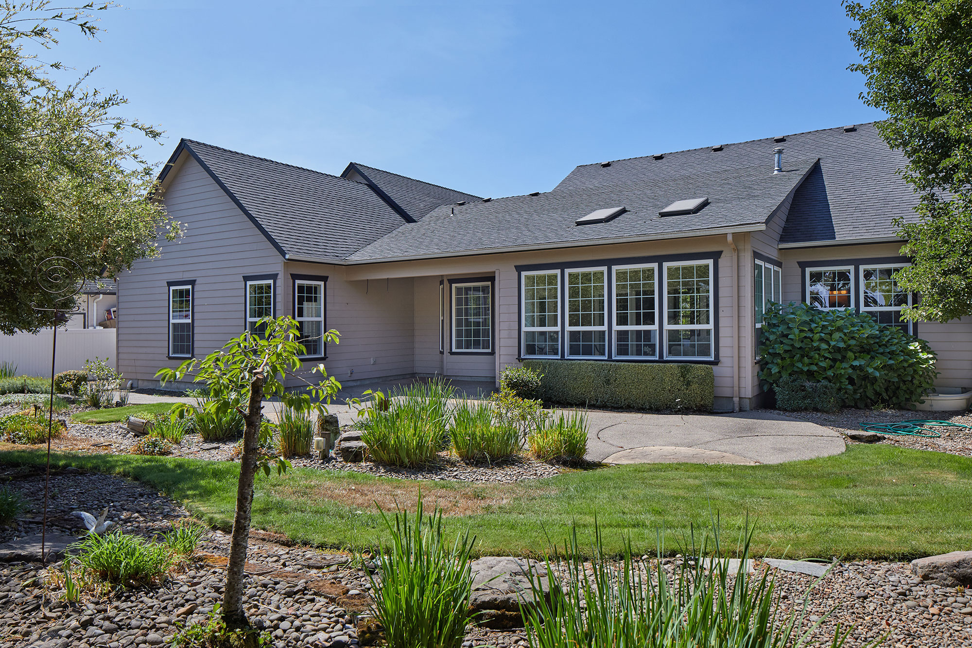 Welcome to this beautiful architect designed and custom-built home. A wonderful traditional upscale feeling flows from the entry all the way to the back yard. Too many custom features to mention. 2,567 sq ft all on one level! Beautiful laminate and tile floors in living and traffic areas and brand-new carpeting in two of the three bedrooms. A gorgeous library wall in the great room serves as the focal point of the living area and surrounds a gas fireplace. The bright and cheerful family room feels more like a sunroom with walls of windows and skylights. The cook’s dream kitchen has granite, tile and two sinks plus a generous walk-in pantry. The back yard has large expanses of aggregate and stamped concrete, lush and expansive landscaping.