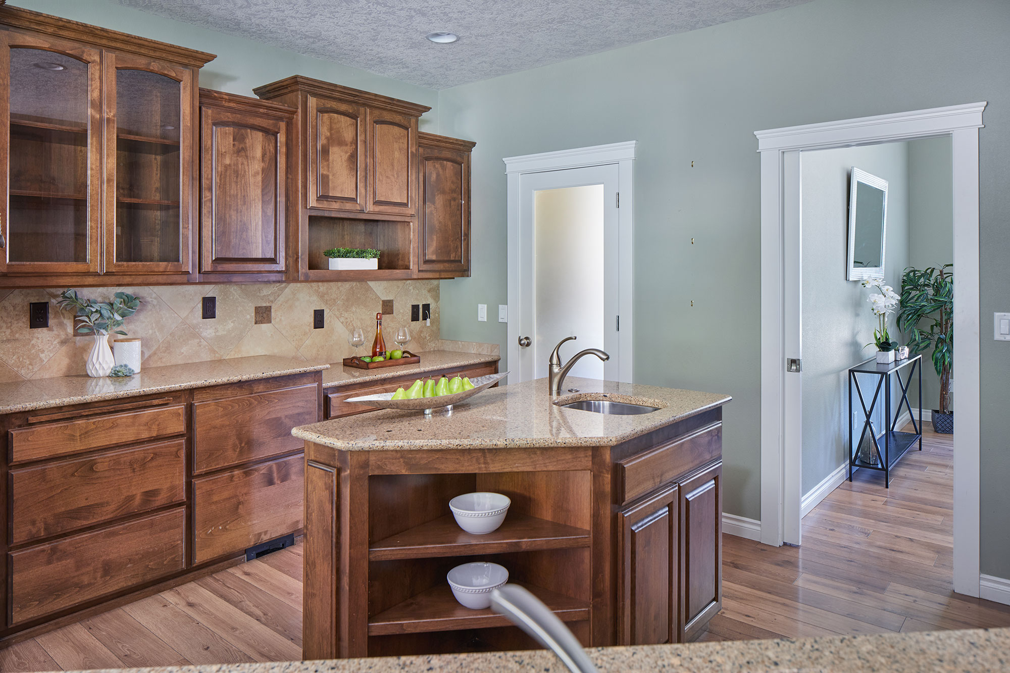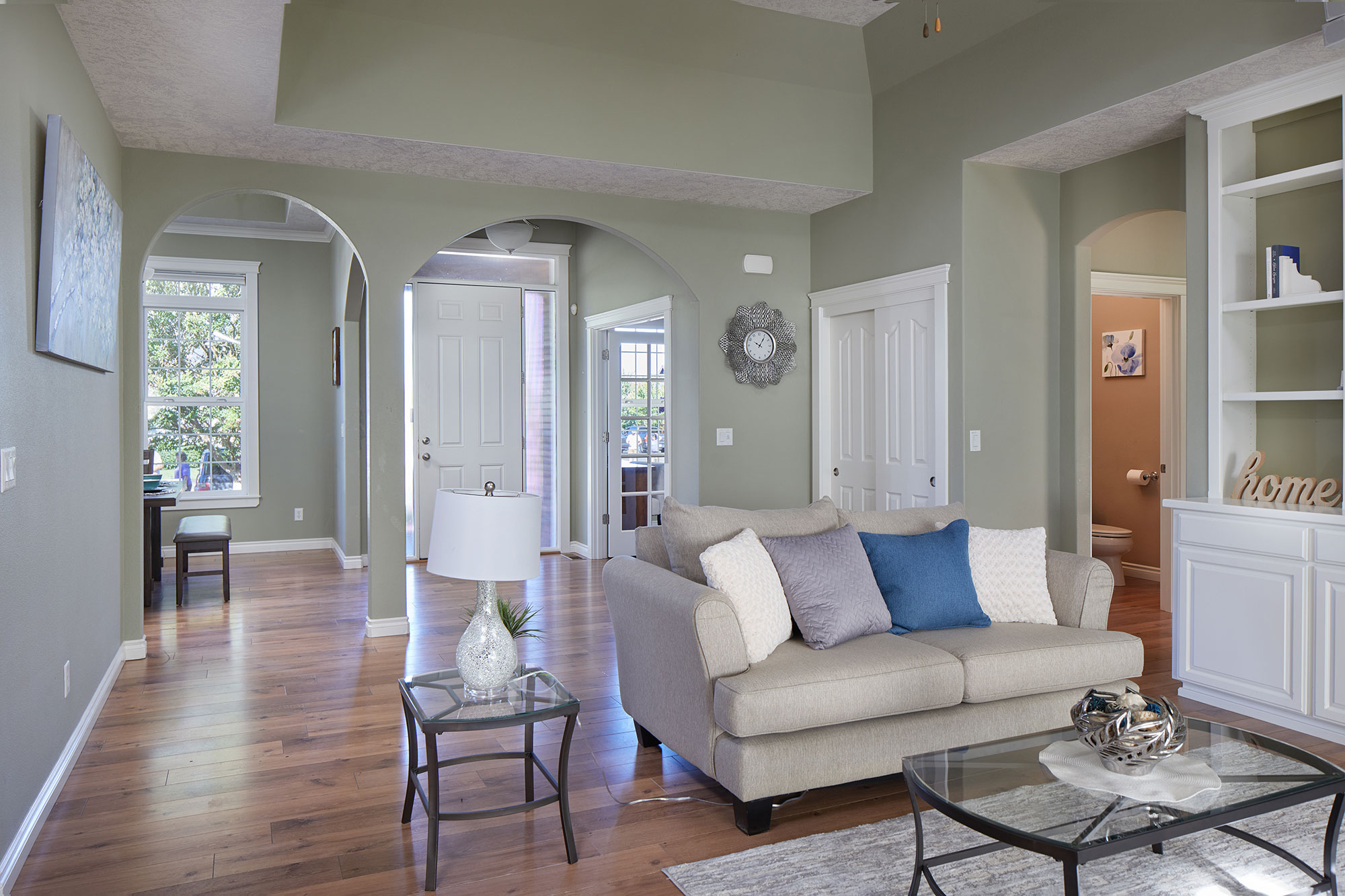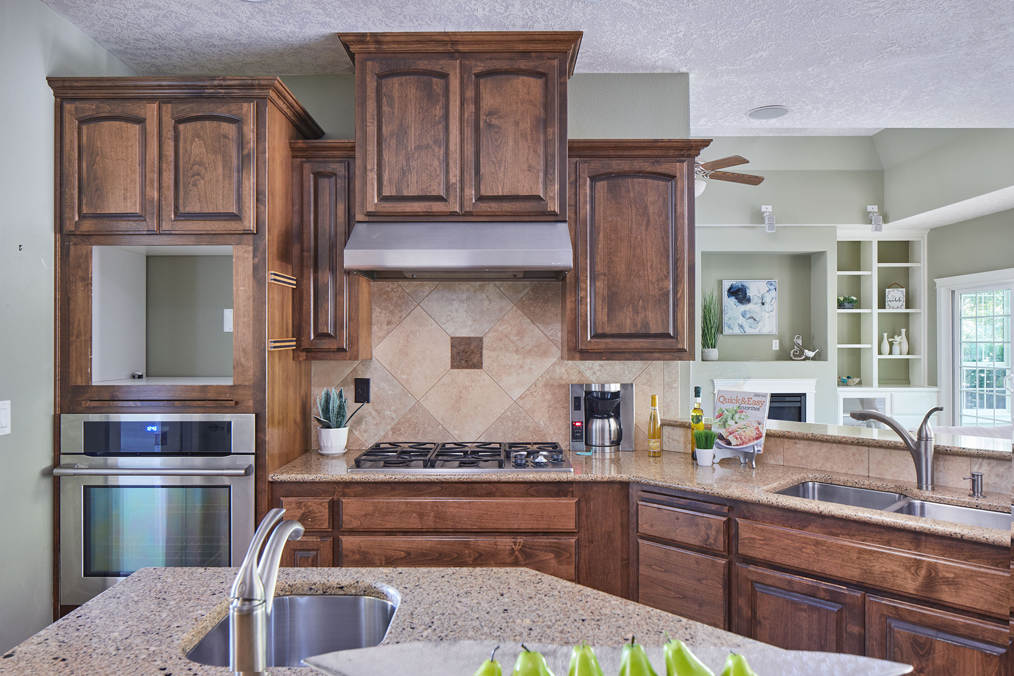 Welcome to this beautiful architect designed and custom-built home. A wonderful traditional upscale feeling flows from the entry all the way to the back yard. Too many custom features to mention. 2,567 sq ft all on one level! Beautiful laminate and tile floors in living and traffic areas and brand-new carpeting in two of the three bedrooms. A gorgeous library wall in the great room serves as the focal point of the living area and surrounds a gas fireplace. The bright and cheerful family room feels more like a sunroom with walls of windows and skylights. The cook’s dream kitchen has granite, tile and two sinks plus a generous walk-in pantry. The back yard has large expanses of aggregate and stamped concrete, lush and expansive landscaping.